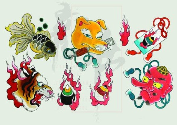 半甲唐狮手稿 传统的9款唐狮主题半甲纹身手稿图片