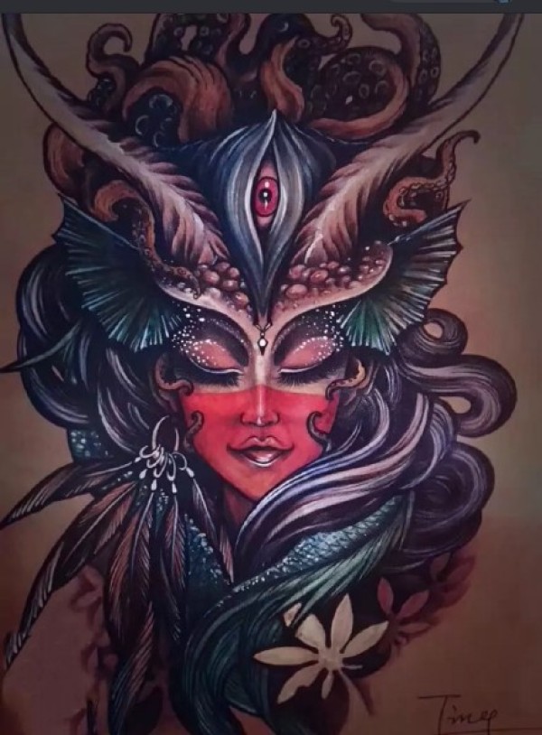 传统艺妓般若纹身图案手稿