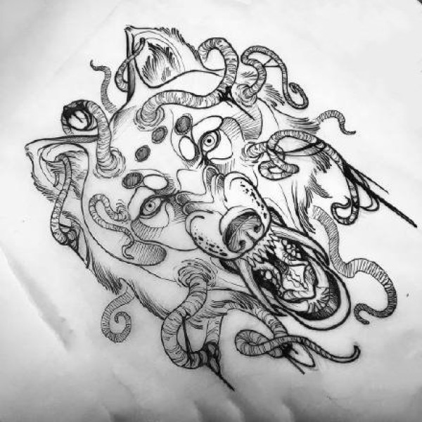 半甲唐狮手稿 传统的9款唐狮主题半甲纹身手稿图片