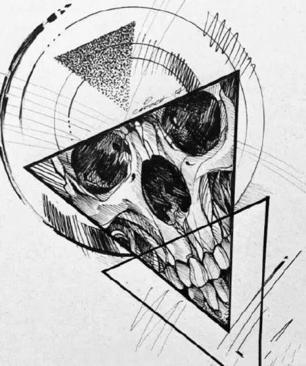 创意十足的几何+骷髅的黑色线稿纹身手稿图案