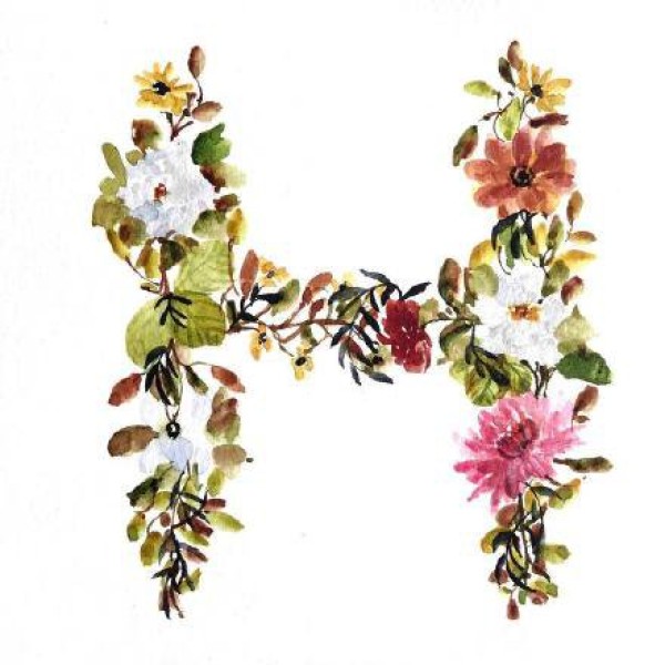 花朵组成的创意英文字母纹身手稿图片