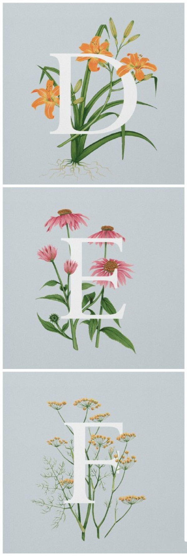 花朵组成的创意英文字母纹身手稿图片