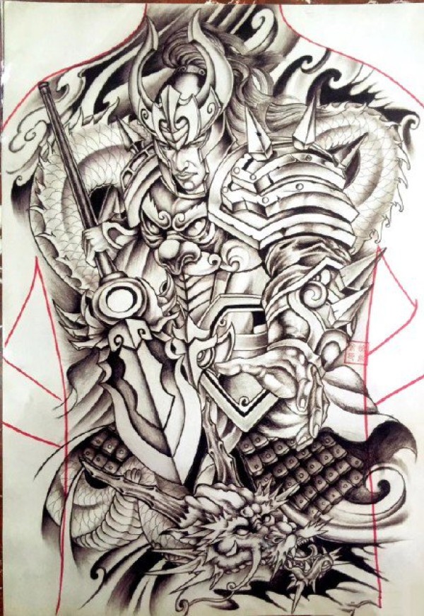 一组满背大气九龙拉棺纹身图案作品和手稿