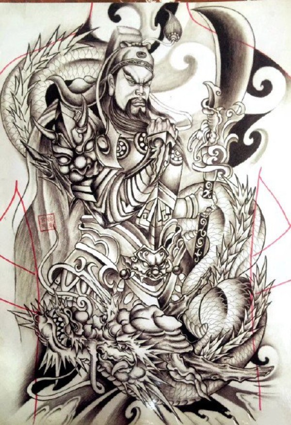 一组满背大气九龙拉棺纹身图案作品和手稿