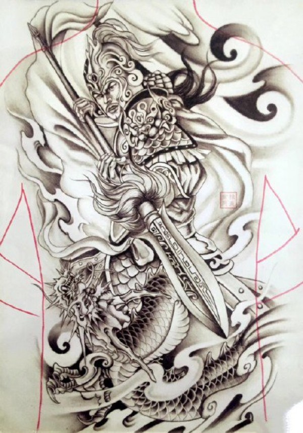 一组满背大气九龙拉棺纹身图案作品和手稿