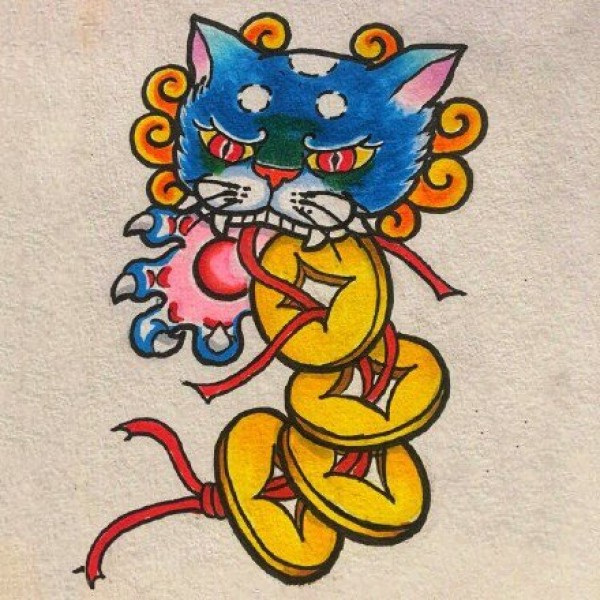 半甲唐狮手稿 传统的9款唐狮主题半甲纹身手稿图片