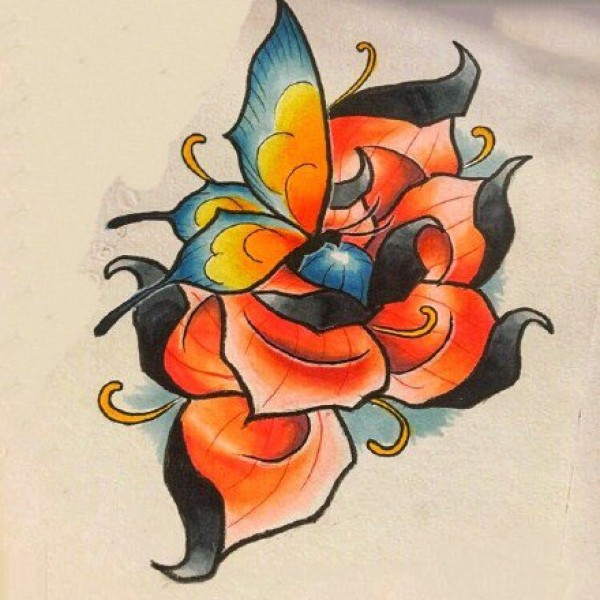 一波school橙色调的创意彩色纹身手稿图
