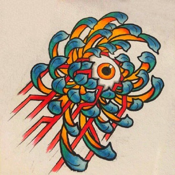一波school橙色调的创意彩色纹身手稿图