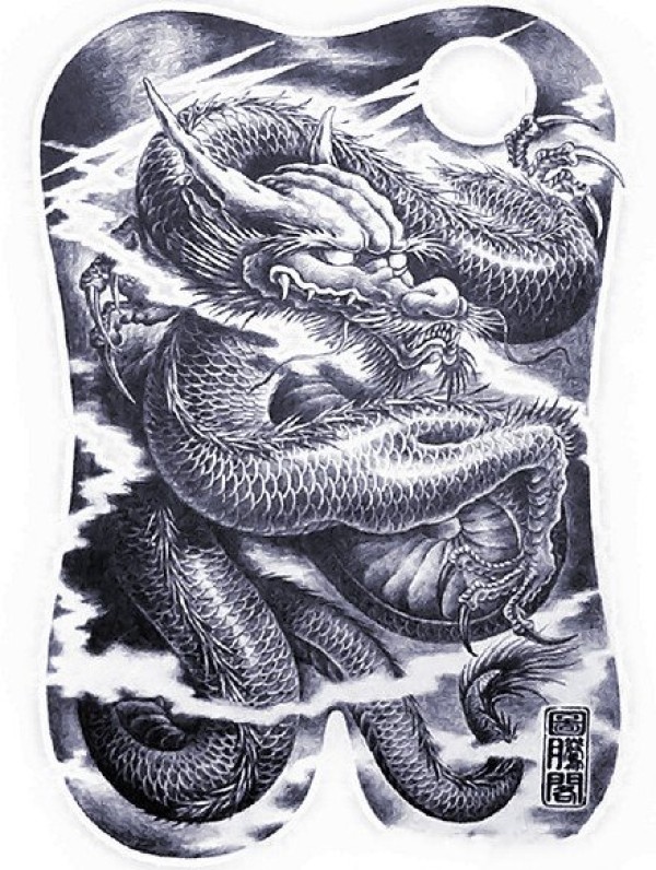满背龙手稿--9张适合大满背的传统龙纹身手稿图案