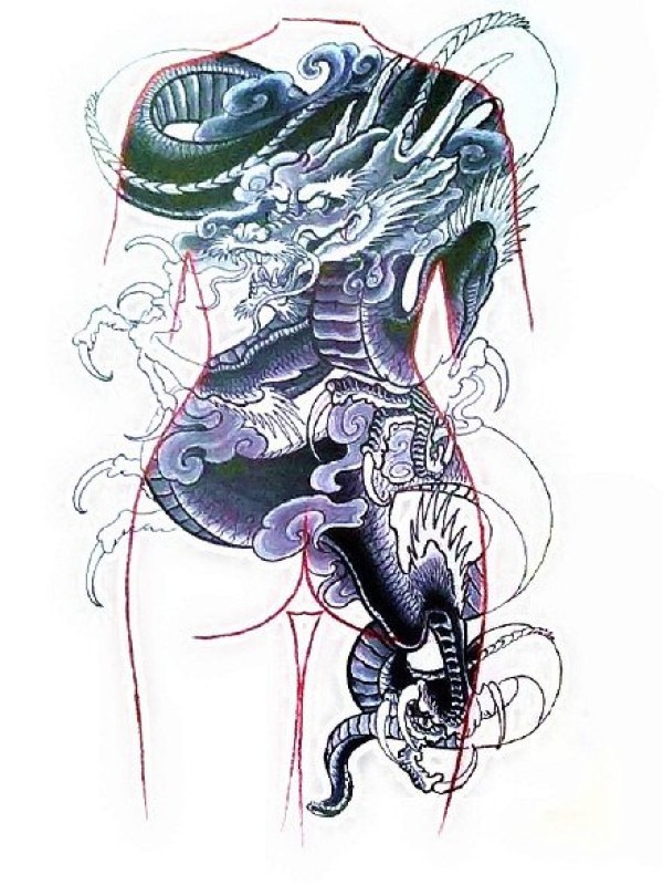 满背龙手稿--9张适合大满背的传统龙纹身手稿图案