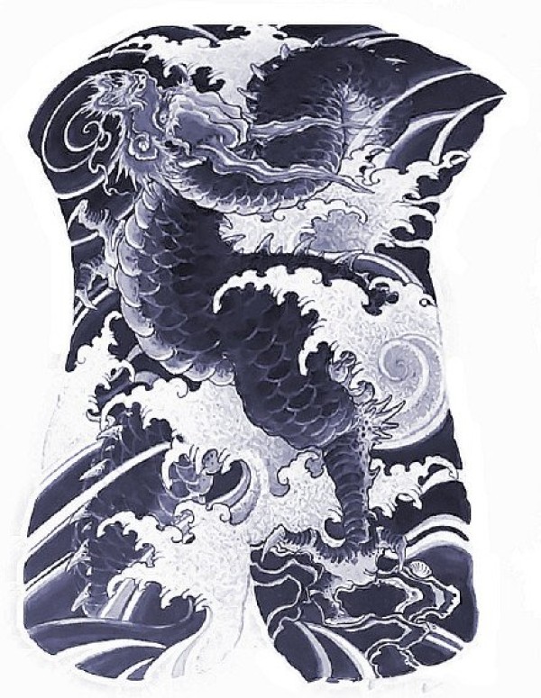 满背龙手稿--9张适合大满背的传统龙纹身手稿图案