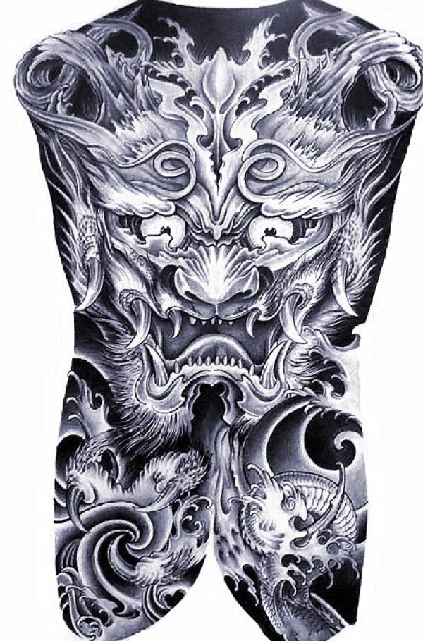 满背龙手稿--9张适合大满背的传统龙纹身手稿图案