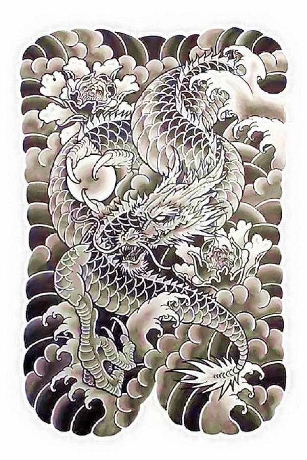 满背龙手稿--9张适合大满背的传统龙纹身手稿图案
