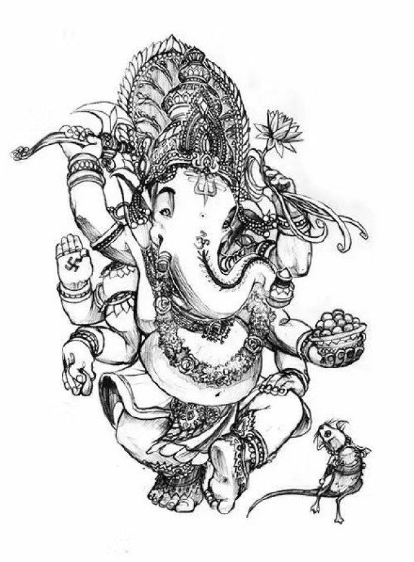 好看的一组象神的纹身手稿图案9张