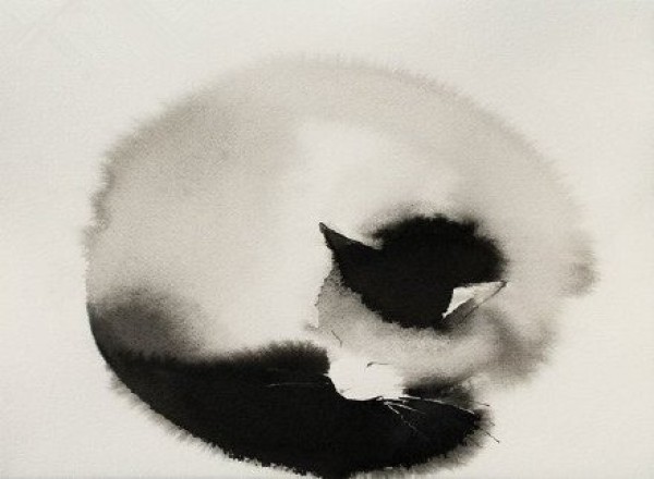黑色的中国风水墨猫纹身手稿图案欣赏