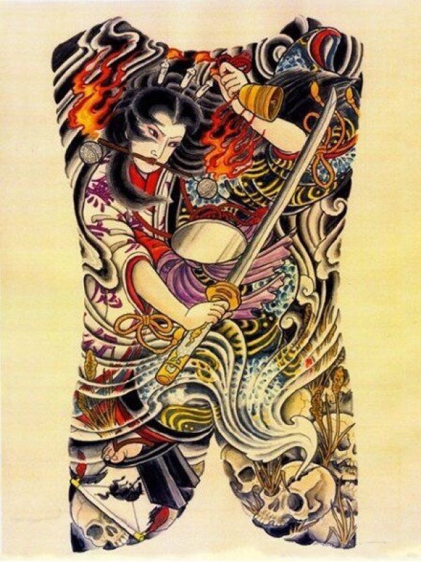 一组日式老传统人物的纹身手稿图片赏析