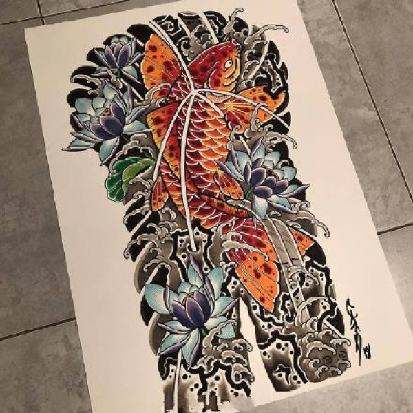 传统的30款鲤鱼纹身手稿图片赏析