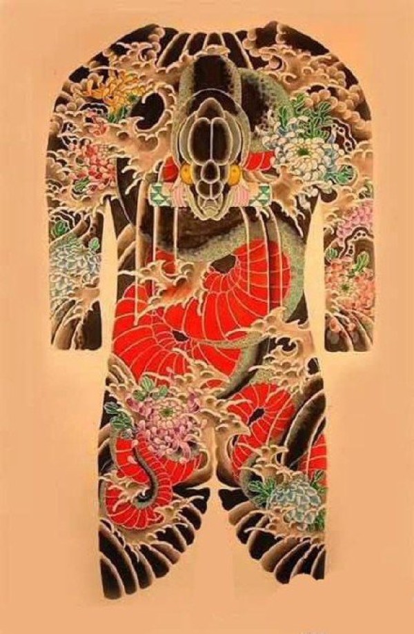 传统大满背手稿--35张日式老传统风格的大满背纹身手稿图案