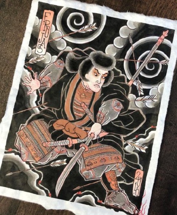 一组日式老传统人物的纹身手稿图片赏析