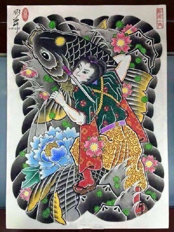 传统大满背手稿--35张日式老传统风格的大满背纹身手稿图案