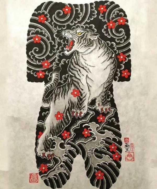 传统大满背手稿--35张日式老传统风格的大满背纹身手稿图案