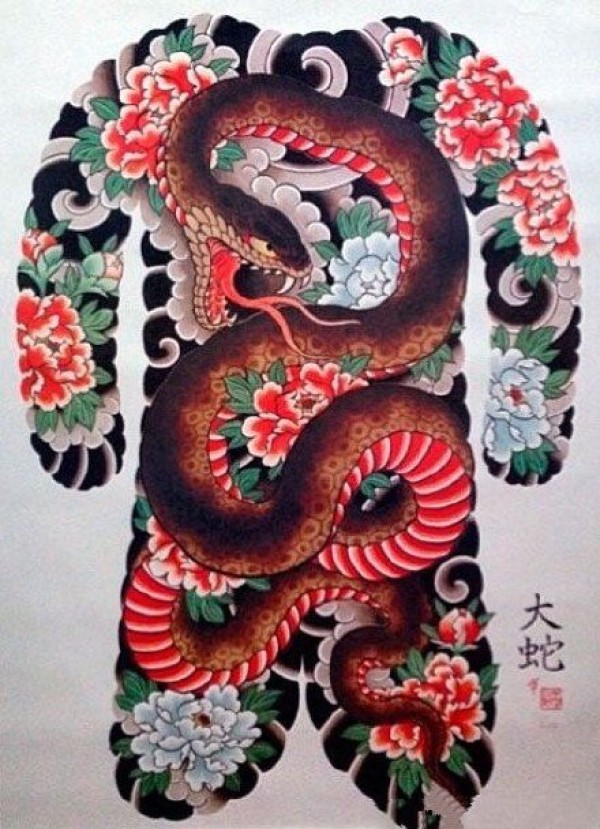 传统大满背手稿--35张日式老传统风格的大满背纹身手稿图案