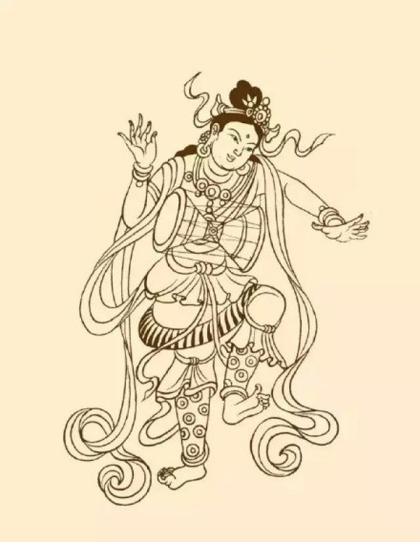 敦煌石窟壁画的侍女飞天仙女等人物手稿