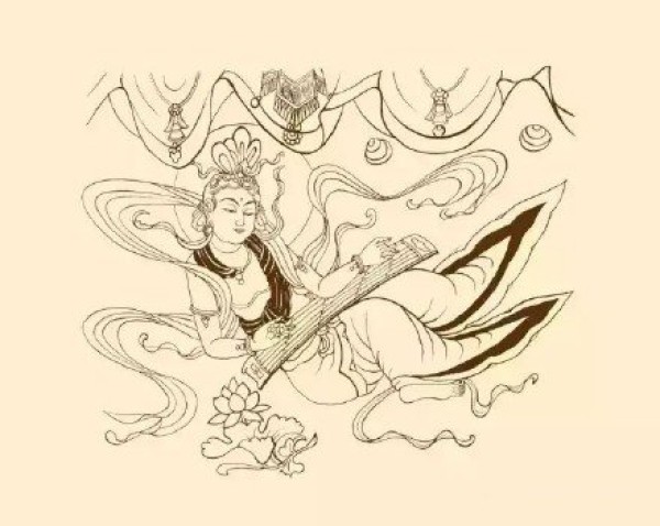 敦煌石窟壁画的侍女飞天仙女等人物手稿