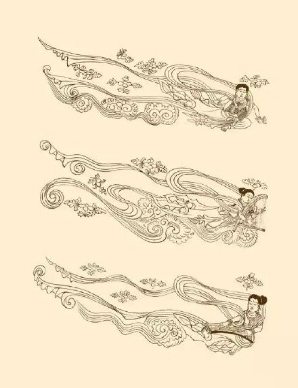 敦煌石窟壁画的侍女飞天仙女等人物手稿