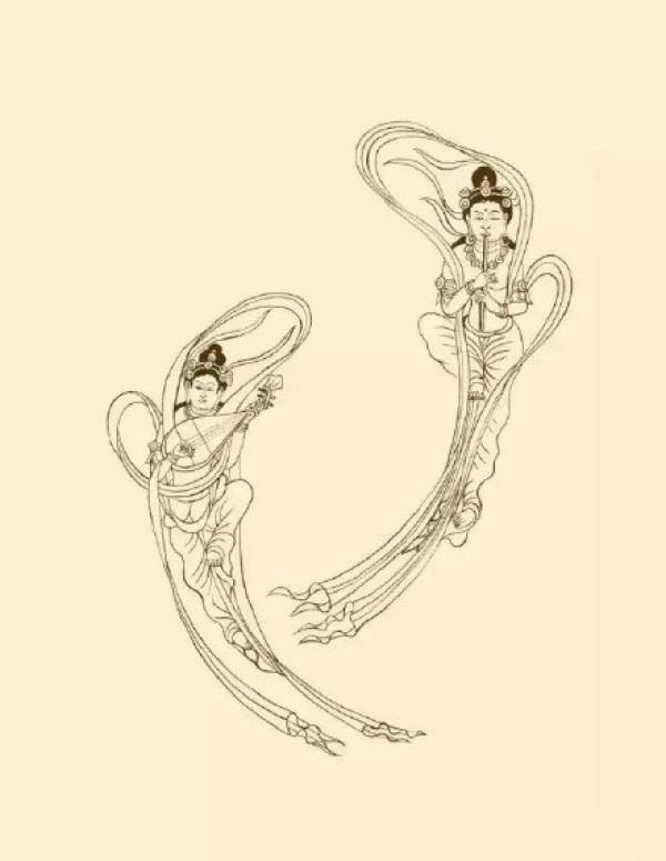 敦煌石窟壁画的侍女飞天仙女等人物手稿