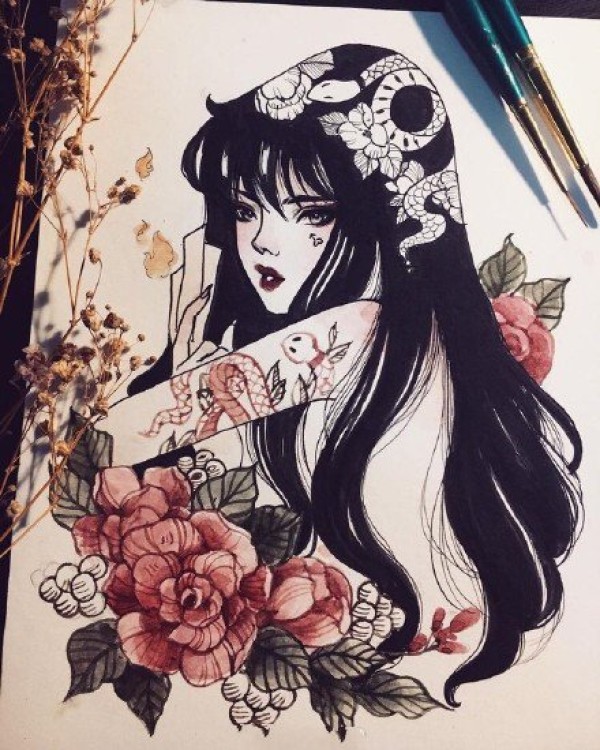 女生喜爱的简单手绘纹身图案来自于纹身师安雅