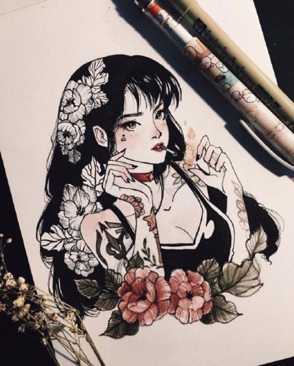 女生喜爱的简单手绘纹身图案来自于纹身师安雅