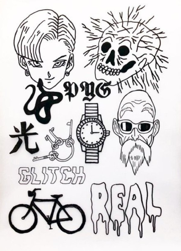 小清新风格的一组小黑组图纹身线稿手稿素材