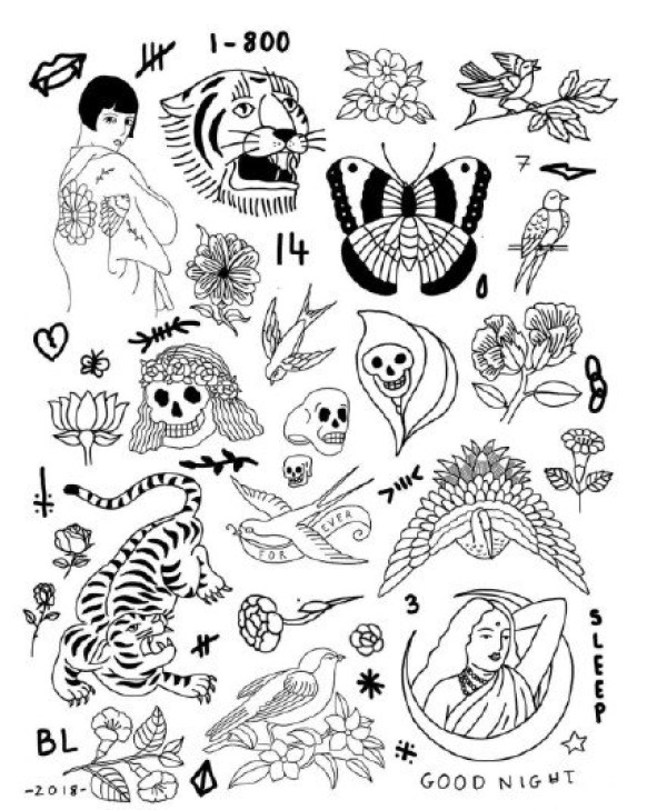 女生喜爱的简单手绘纹身图案来自于纹身师安雅