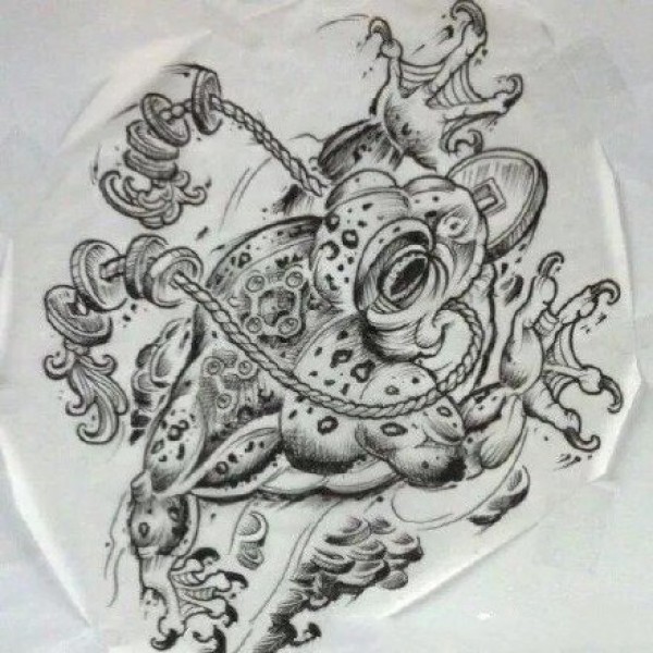 12张招财金蟾相关的蟾蜍纹身手稿图案
