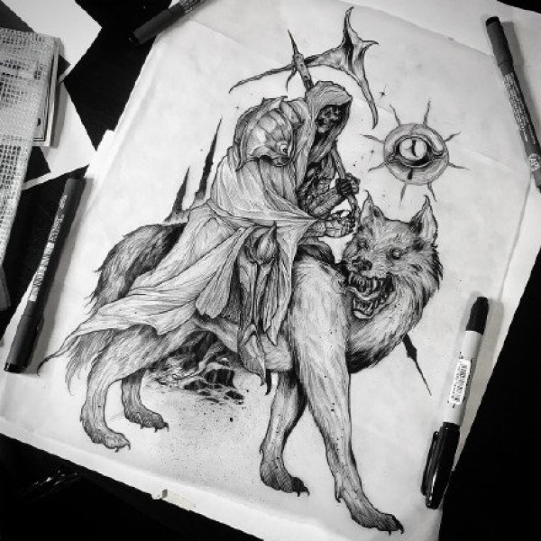 一组满背大气九龙拉棺纹身图案作品和手稿