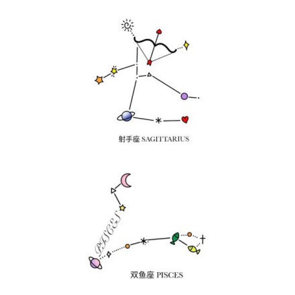 十二星座的一组简约小清新符号设计纹身手稿图案
