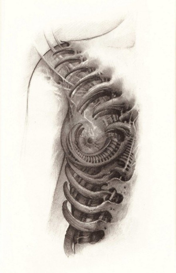 23张3d机械骨骼纹身手稿图案