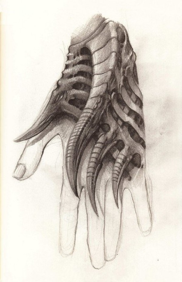 23张3d机械骨骼纹身手稿图案