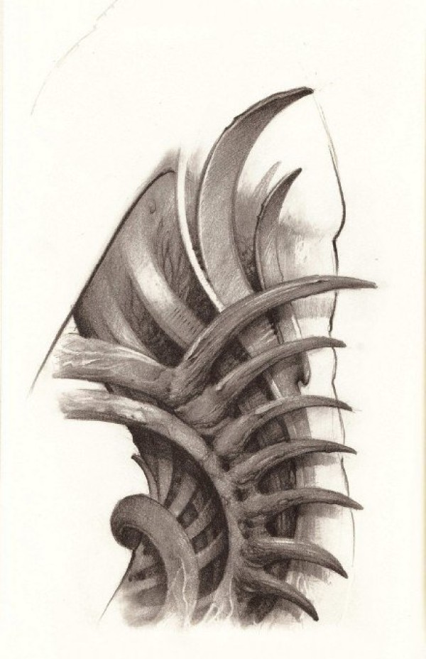 23张3d机械骨骼纹身手稿图案