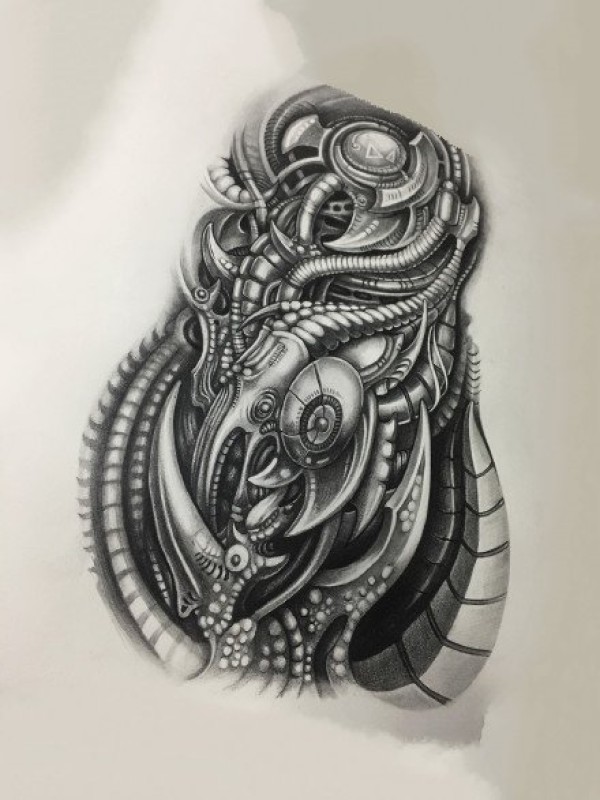 一组满背大气九龙拉棺纹身图案作品和手稿