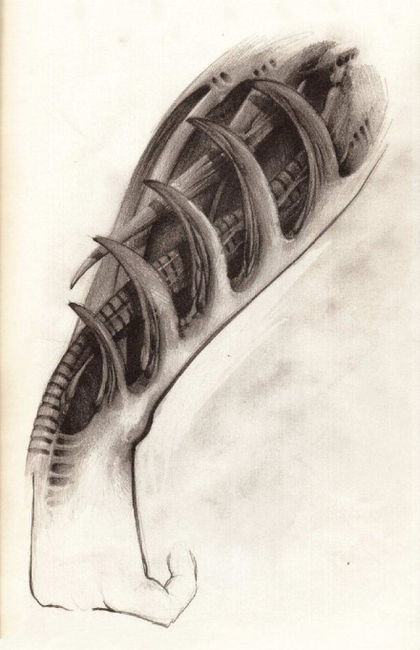 23张3d机械骨骼纹身手稿图案