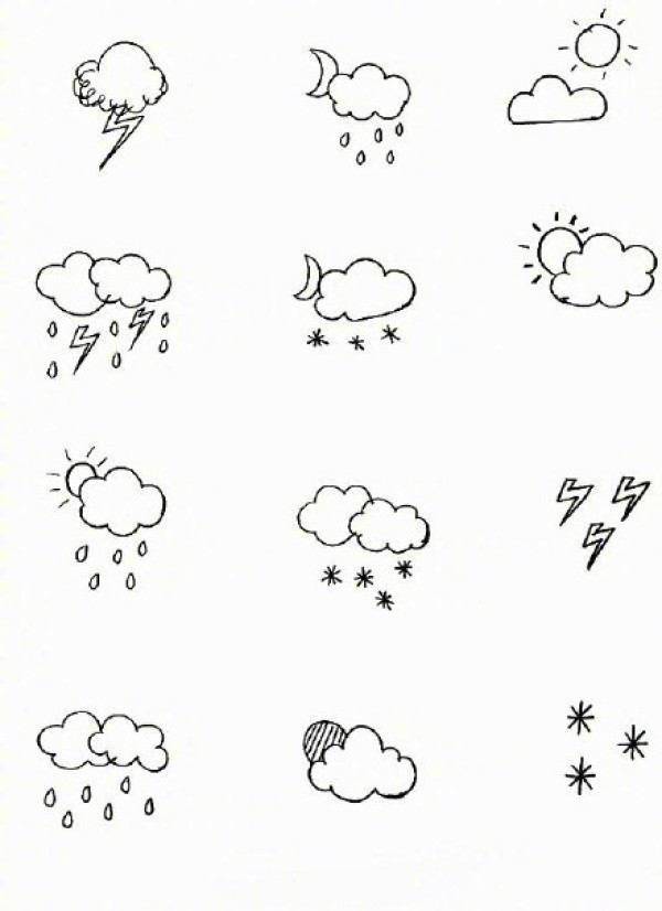 一组天气元素的简笔画素材--可以拿来纹身的天气小清新手稿