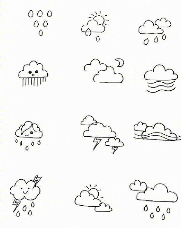 一组天气元素的简笔画素材--可以拿来纹身的天气小清新手稿