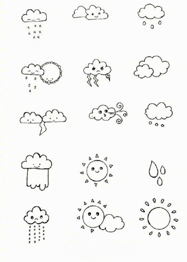 一组天气元素的简笔画素材--可以拿来纹身的天气小清新手稿