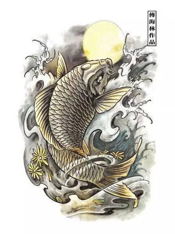 24张寓意富贵的锦鲤纹身手稿图案素材