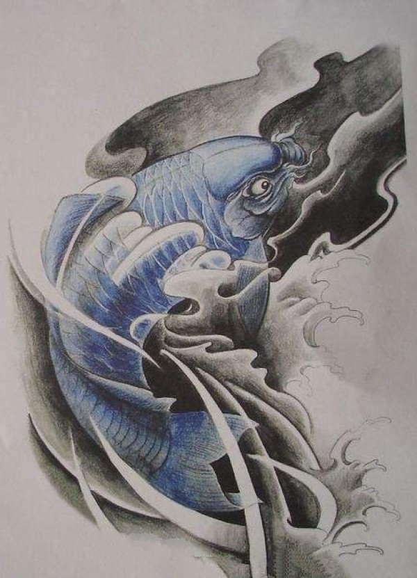 24张寓意富贵的锦鲤纹身手稿图案素材