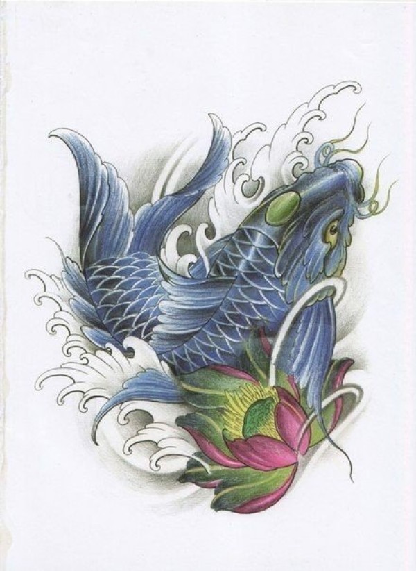 24张寓意富贵的锦鲤纹身手稿图案素材