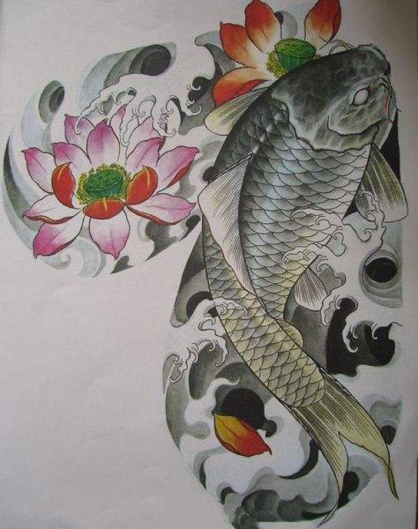 24张寓意富贵的锦鲤纹身手稿图案素材