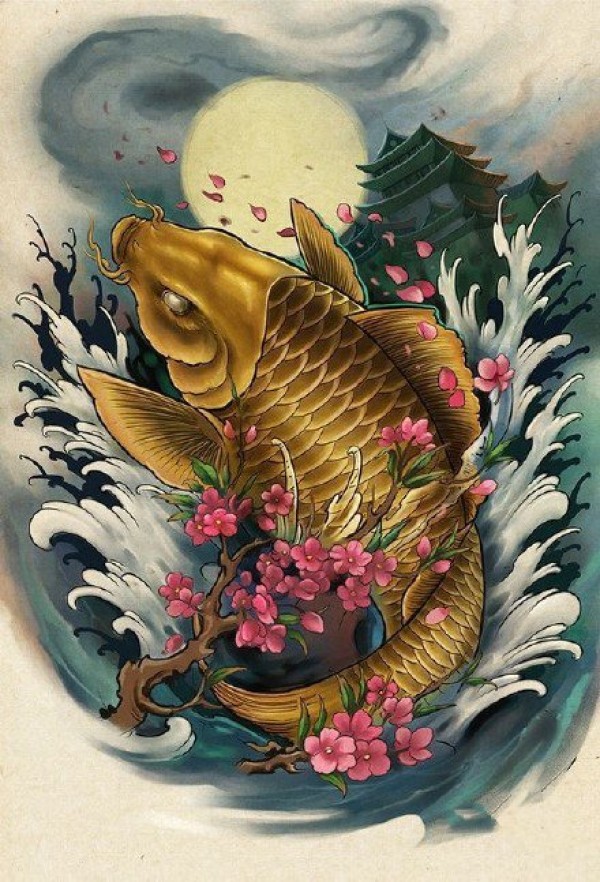 24张寓意富贵的锦鲤纹身手稿图案素材